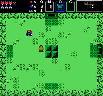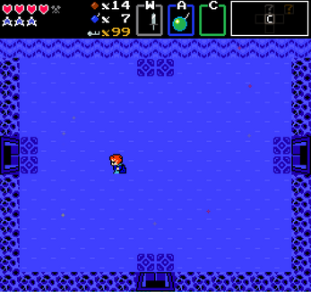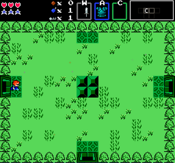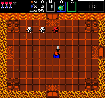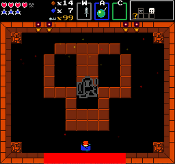 - X key: Drop a bomb. Bombs will explode after a short delay, and can destroy some obstacles and walls to find hidden secrets or item pickups, such as coins or keys.
